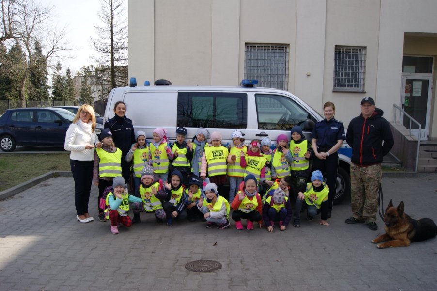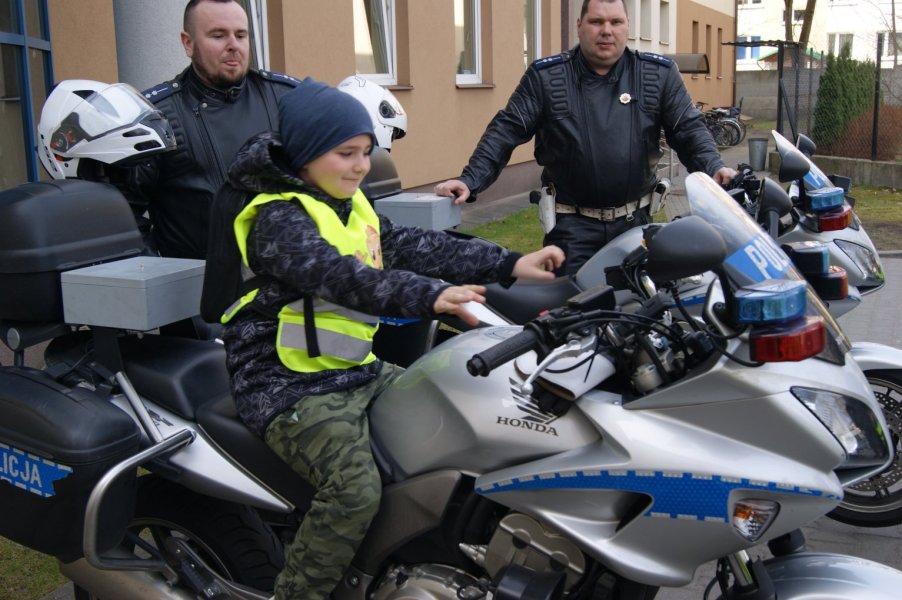 Najciekawszym dla dzieci punktem spotkania okazało się wyjście na otwarty teren komendy, gdzie zobaczyły radiowóz policyjny oraz motocykle. Wraz z policjantami ruchu drogowego asp. Marcinem Grabskim oraz asp. Januszem Kodzis mogli włączyć sygnały świetlne i dźwiękowe motocykli, co okazało się niezłą frajdą. Policjanci ponadto sprawdzili ich wiedzę z zakresu ruchu drogowego.