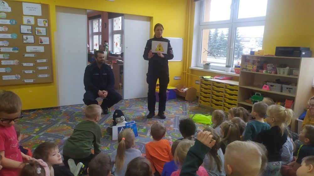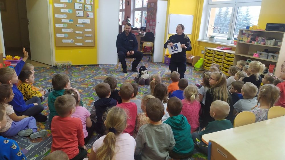 W czwartek, 24 listopada przedszkolaki z Gminnego Przedszkola w Nowinach z odziałem w Szczytnie odwiedziła policjantka Zespołu Profilaktyki Społecznej st. sierż. Joanna Manelska wraz z dzielnicowym asp. Karolem Ponikiewskim.