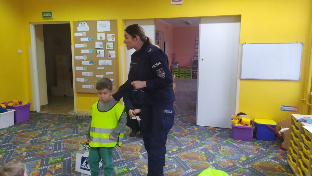Policjanci poinformowali również, na jakie zagrożenia związane z poruszaniem się po drogach trzeba szczególnie zwrócić uwagę. W ramach spotkania dzieci otrzymały odblaski, które wpłyną na poprawę ich bezpieczeństwa w trakcie poruszania się w porze od zmierzchu do świtu.