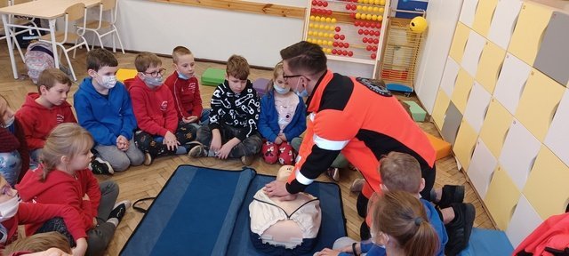 Ratownik wyjaśniał uczniom między innymi to, jak sprawdzić przytomność osoby poszkodowanej oraz w jaki sposób wzywać pomoc. Dzieci utrwaliły numery telefonów ratunkowych oraz dowiedziały się w jaki sposób rozmawiać przez telefon z dyspozytorką. Obserwowały w jaki sposób wykonuje się resuscytację.