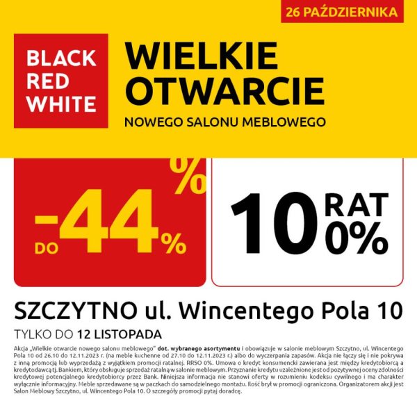 Promocja. Sklep ABM Meble w Szczytnie zaprasza Was na spektakularne wydarzenie - nowe otwarcie z marką Black Red White!