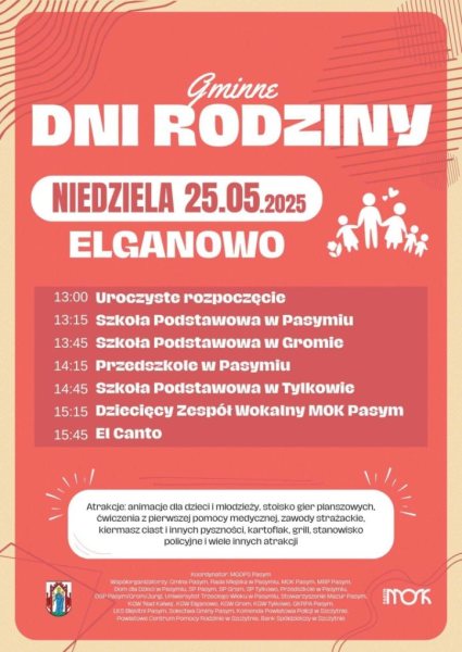 Organizatorzy – MGOPS Pasym wraz z gminą, szkołami, kołami gospodyń i lokalnymi służbami – gwarantują rodzinną atmosferę i bezpieczną zabawę przez całe popołudnie. Wstęp wolny, więc spakujcie koc piknikowy, dobry humor i przyjedźcie do Elganowa. Spotkajmy się tam, gdzie bije rodzinne serce naszej gminy!