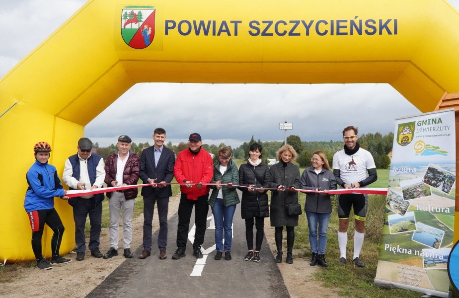 Rajd rowerowy, który towarzyszył otwarciu, swoja mete miał bliżej, bo w Dźwierzutach. Tam też, po tradycyjnym przecięciu wstęgi, przemówieniach, kwiatach, prezentach i ogólnej oficjalnej radości, „ozdobiono” uczestników pierwszego, a więc historycznego gromadnego przejazdu, okolicznościowymi medalami. Później cykliści, goście i wszyscy inni chętni mogli oddać się odpoczynkowi podczas pikniku. Było jadło i napitek, a dla dzieci (chociaż nie tylko) mnóstwo różnych konkursów i zabaw.