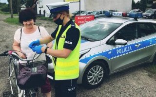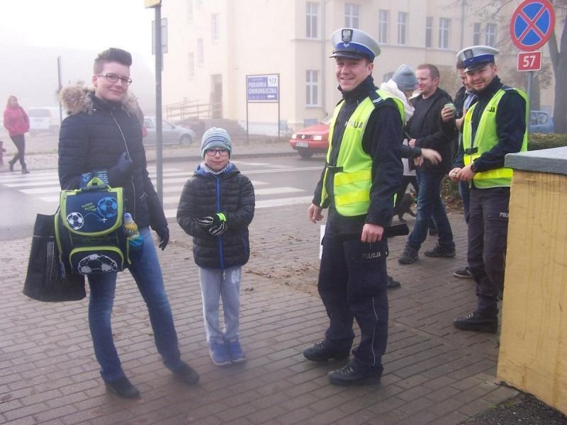 Policjanci dbając o bezpieczeństwo tych najmłodszych uczestników ruchu, rozmawiali z nimi o bezpiecznym poruszaniu się po drodze oraz przekazywali dzieciom odblaski.