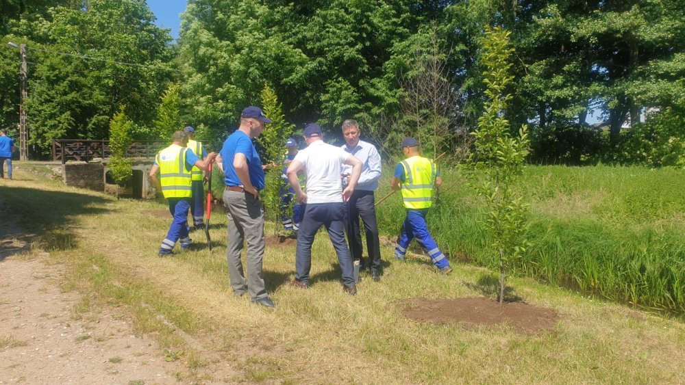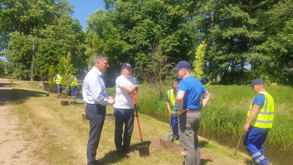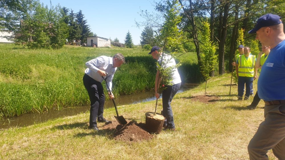 - Drzewa sadzili pracownicy tej instytucji, łącznie z dyrektorami oddziałów w Białymstoku i Ostrołęce, bo dawnemu województwu, pod względem gospodarki wodnej, Rozogi wciąż podlegają. - Oddziały Wód Polskich obejmują obszary mniej więcej zgodne ze zlewniami rzek, a Rozogi, czy raczej nasza rzeka Rozoga, należy do zlewni Narwi – tłumaczy wójt Zbigniew Kudrzycki, który zresztą też graby sadził. - Drzewa zostały posadzone na skarpie, jeszcze za linią wody, więc w terenie objętym działaniami Wód Polskich. Rozogi wybrano dlatego, że w ubiegłym roku w tym miejscu mniej więcej, sporo starych, uschłych drzew zostało wyciętych. Drzewa liściaste mają to do siebie, że dają dużo cienia, zatrzymują więc wilgotność w glebie.