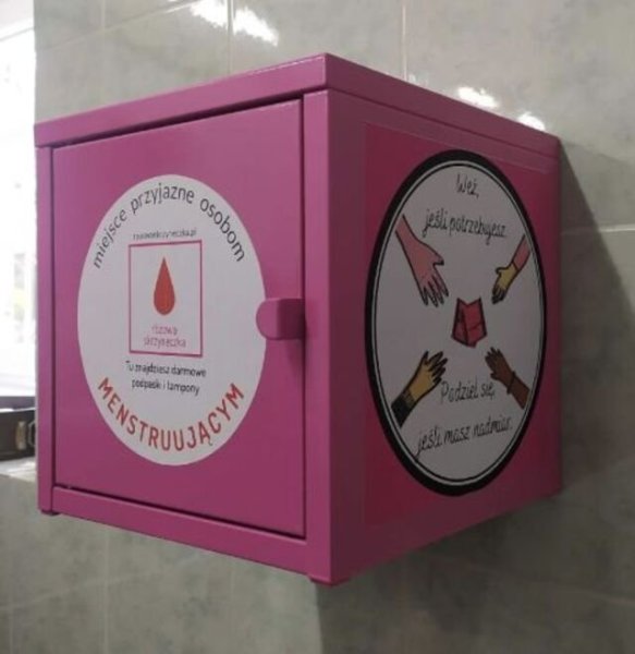 Pomóż nam to zmienić! Walcząc z wykluczeniem i tabu menstruacyjnym – apeluje samorzad uczniowski. - Zabiegamy o powszechny dostęp do bezpłatnych środków higieny osobistej na czas menstruacji w przestrzeni publicznej. W różowej skrzyneczce znajdziesz darmowe podpaski i tampony. Działamy zgodnie z zasadą: weź, jeśli potrzebujesz, zostaw, jeśli masz nadmiar!