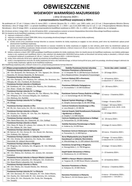 Obwieszczenie Wojewody Warmińsko-Mazurskiego w tej sprawie: