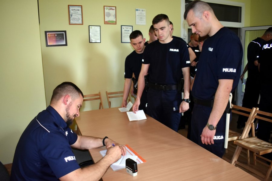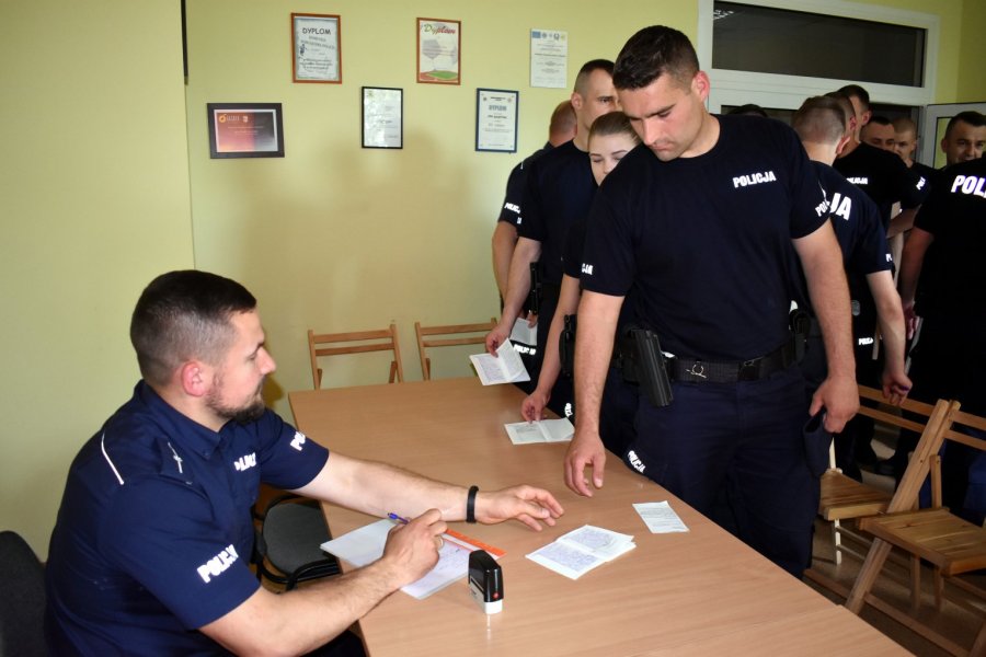 Po odprawie i omówieniu zadań do służby, przyszli funkcjonariusze udali się w rejony służbowe wspólnie ze starszymi kolegami. To właśnie podczas takich służb młodzi policjanci zdobywają doświadczenie i rozwijają umiejętności, które na pewno przydadzą się im podczas pracy zawodowej.