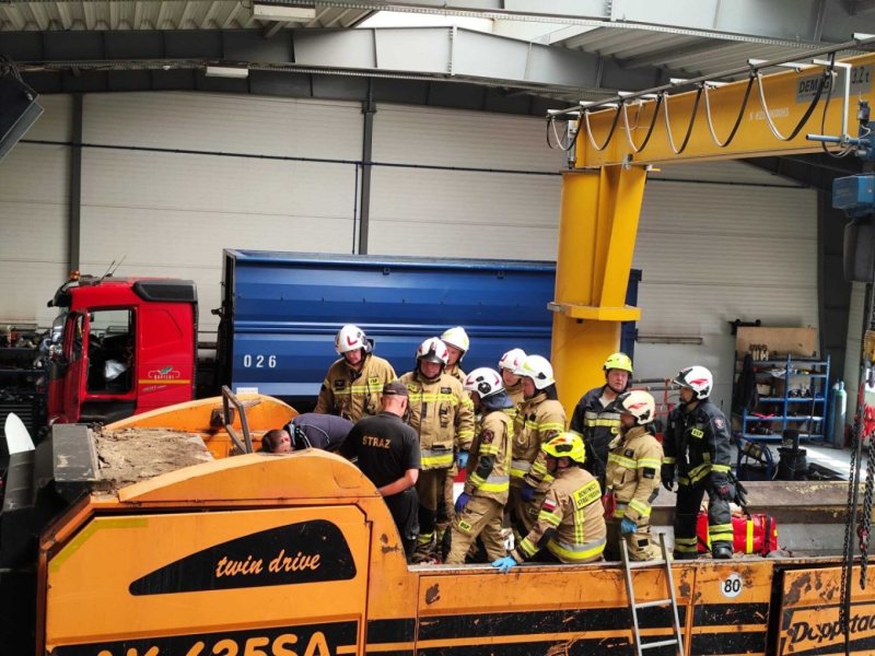 „MEDYK” – strażacy trenowali udzielanie pierwszej pomocy w przypadku urazów mechanicznych, w tym zatrzymania masywnego krwotoku i zabezpieczenia poszkodowanego wciągniętego do maszyny.