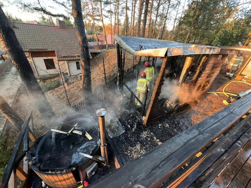 W sobotę, 23 listopada po godz. 6 rano w Małszewie doszło do pożaru sauny ogrodowej. Ogień był na tyle silny, że promieniowanie cieplne naruszyło stojący w pobliżu budynek mieszkalny.