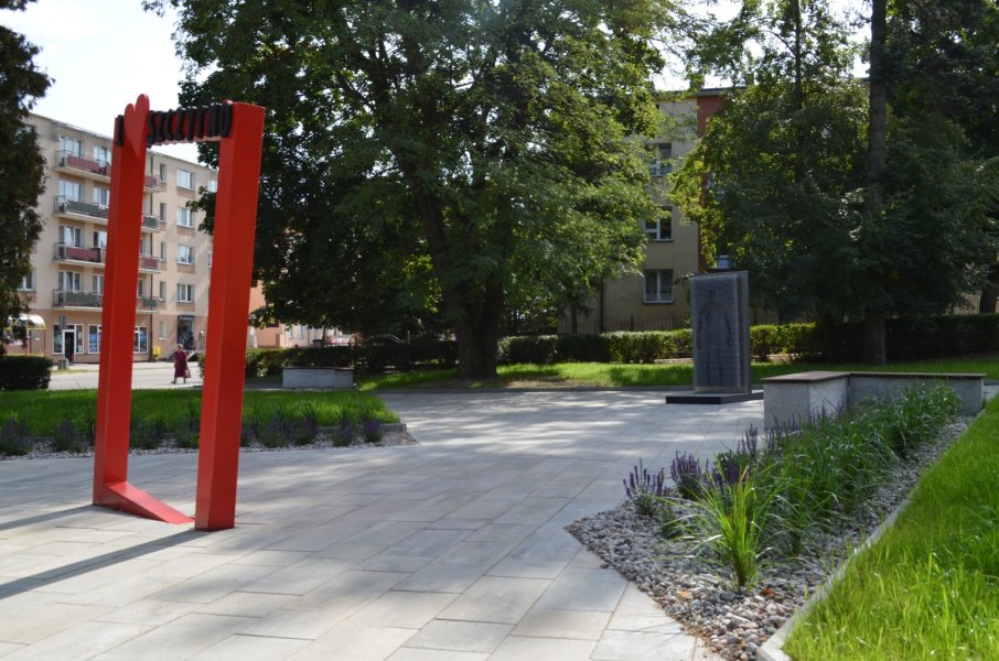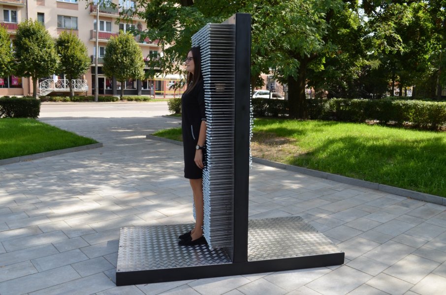 Na odnowionym placu przy Zespole Szkół nr 2 w Szczytnie stanęła ścianka pin art. Wystarczy stanąć przy ściance i lekko oprzeć, przesuwając szpilki na drugą stronę ścianki. W ten sposób powstaje trójwymiarowy obraz.