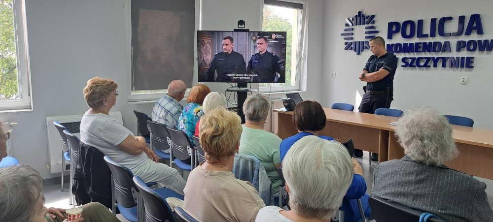 We wtorek, 6 sierpnia Komenda Powiatowa Policji w Szczytnie gościła seniorów z Klubu „Senior +” oraz Uniwersytetu III Wieku. Dzielnicowi st. sierż. Pamela Perdjon i asp. Kamil Niedziela przedstawili zebranym najczęstsze metody oszustw, takie jak: „na wnuczka”, „na policjanta”, „na pracownika banku”, „na Blika” oraz oszustwa za pomocą SMS-ów i fałszywych stron internetowych.