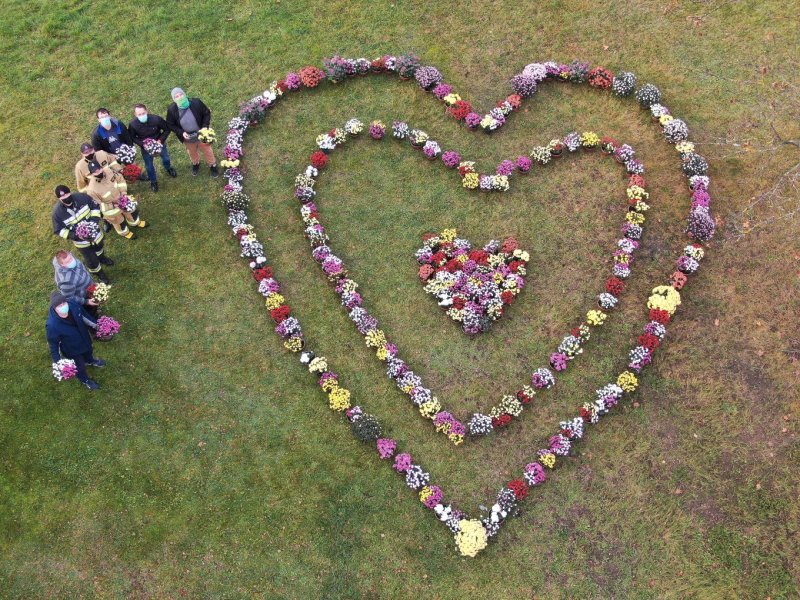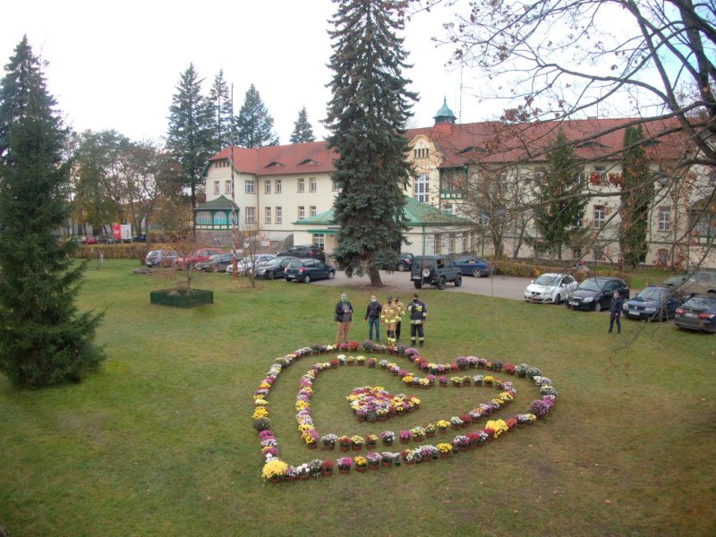 W podziękowaniu pracownikom służby zdrowia za wyczerpującą walkę z epidemią koronawirusa we wtorek, 10 listopada szczycieńscy druhowie z Ochotniczej Straży Pożarnej w Szczytnie, oraz pracownicy Starostwa Powiatowego w Szczytnie ułożyli przed szpitalem ogromne serce z chryzantem.