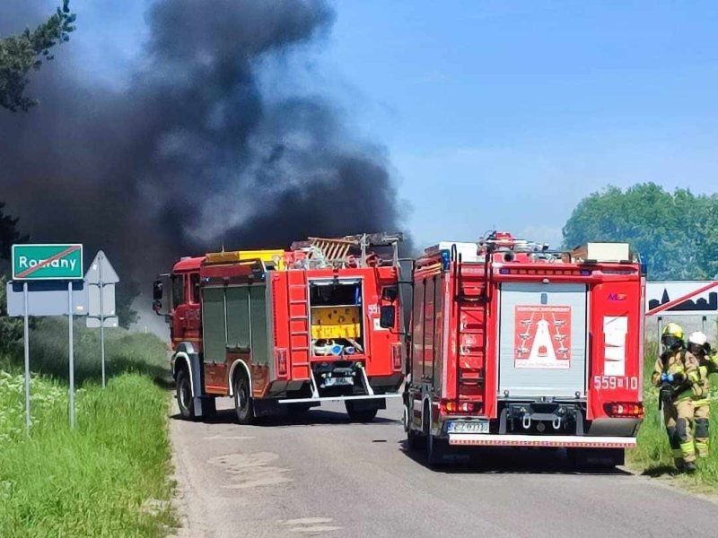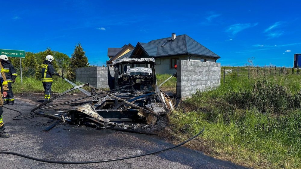 Równie dramatyczna sytuacja miała miejsce na drodze w okolicach Roman. Bus marki Renault, który ciągnął przyczepkę, zapalił się podczas jazdy. Pojazdem kierował 60-letni mieszkaniec Szczytna. Auto spłonęło doszczętnie, ale na szczęście kierowca nie ucierpiał. Pożar rozprzestrzenił się również na pobliski las. Na szczęście strażacy szybko opanowali sytuację.