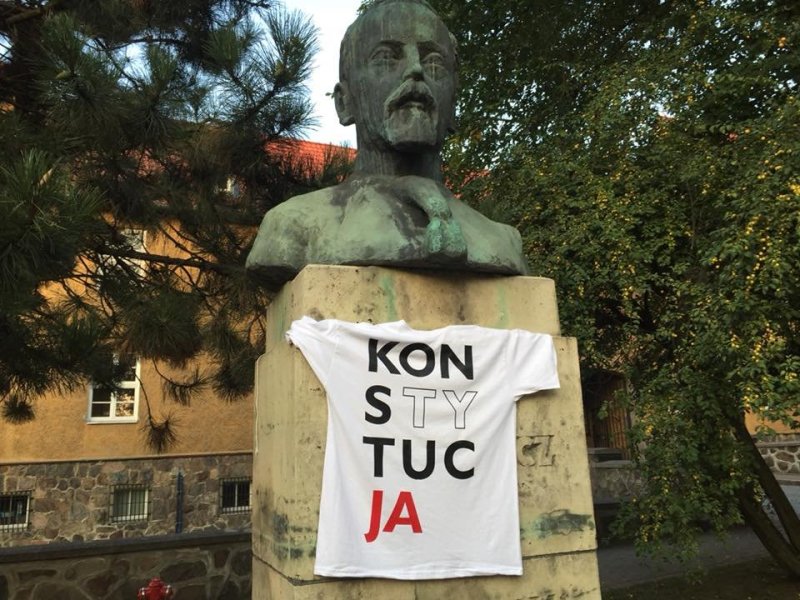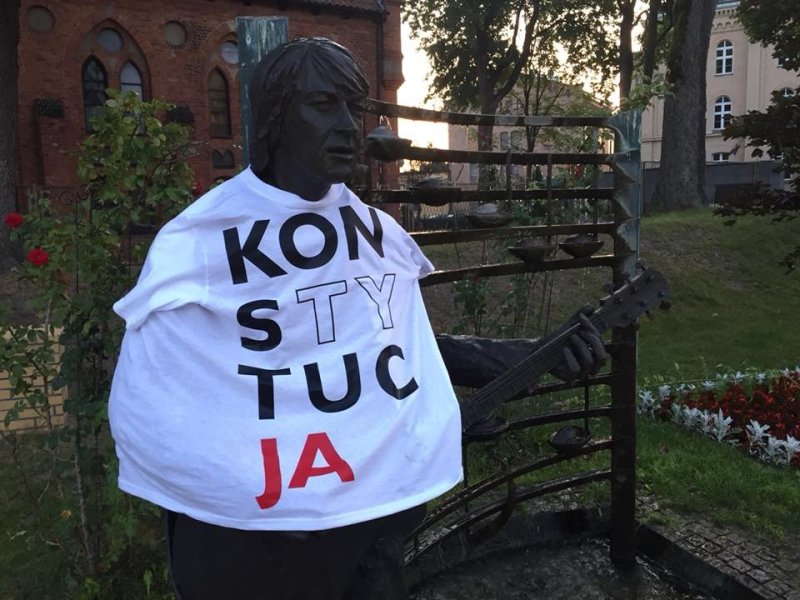 Od kilku tygodni w całej Polsce trwa nietypowa akcja protestacyjna. Ktoś ubiera pomniki w koszulki z charakterystycznym napisem „KonsTytucJa”. W piątek akcja dotarła również do Szczytna. Kilkanaście miejskich pomników, w tym między innymi Henryka Sienkiewicza, Krzysztofa Klenczona, czy miejskie pofajdoki „przyodziały” białe koszulki z napisem „KonsTytucJa”.