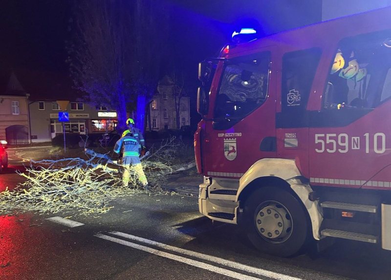 Po godzinie 18:30 strażacy odnotowali pierwsze interwencje. Druhowie z OSP Pasym zostali zadysponowani do powalonego drzewa, które zatarasowało drogę w miejscowości Grom. Do podobnego zdarzenia doszło przy ul. Lanca w Szczytnie, gdzie strażacy z OSP Szczytno usuwali drzewo blokujące jezdnię i chodnik.