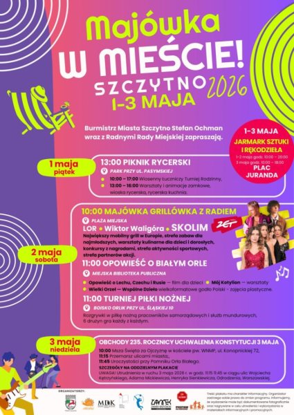 Koncert Skolima, piknik rycerski, wydarzenia dla dzieci i obchody 3 Maja – w Szczytnie. Znamy szczegółowy program tegorocznej majówki. Impreza potrwa trzy dni i obejmie wydarzenia w różnych częściach miasta.