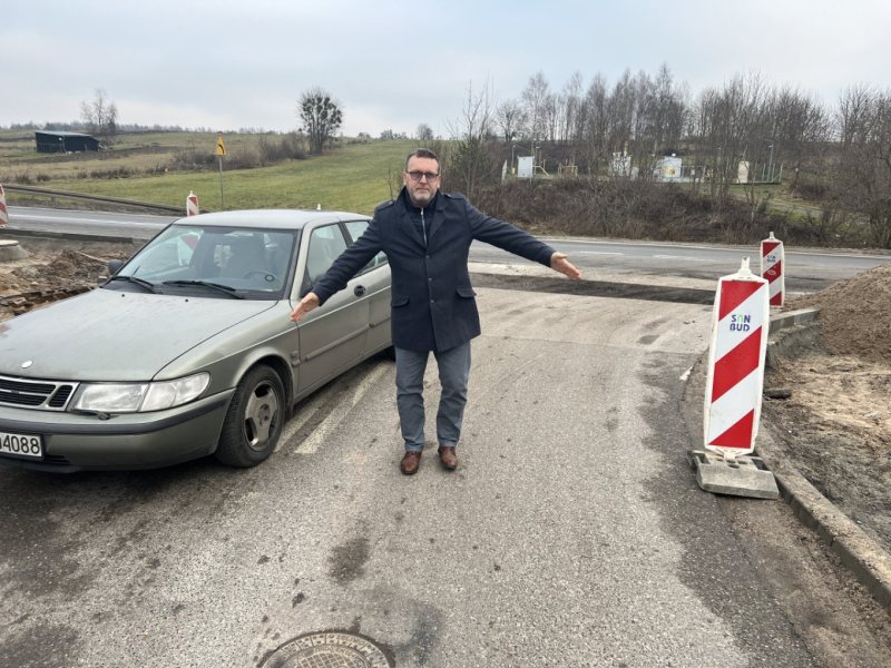 – Tu nie ma miejsca. Dwa auta się nie miną. Dostawczak nie ma szans. To tylko kwestia czasu, aż dojdzie do wypadku – mówi radny stojąc na przybudowywanym skrzyżowaniu.