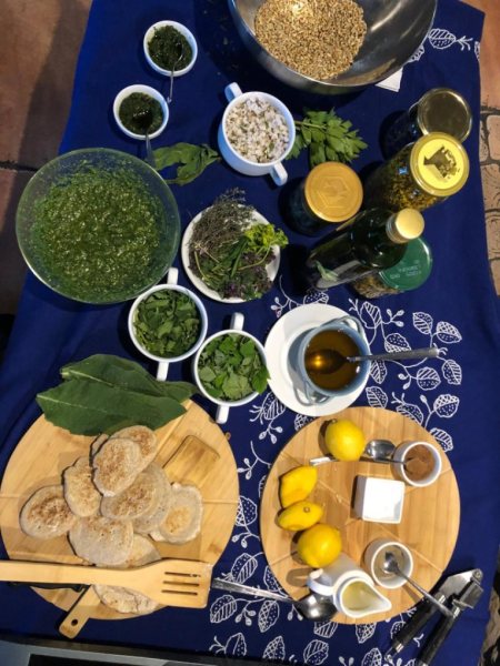 Były też młode pędy chmielu smażone na maśle, nazywane „dzikimi szparagami”, domowa chałwa ze słonecznika i sezamu oraz napary ziołowe.