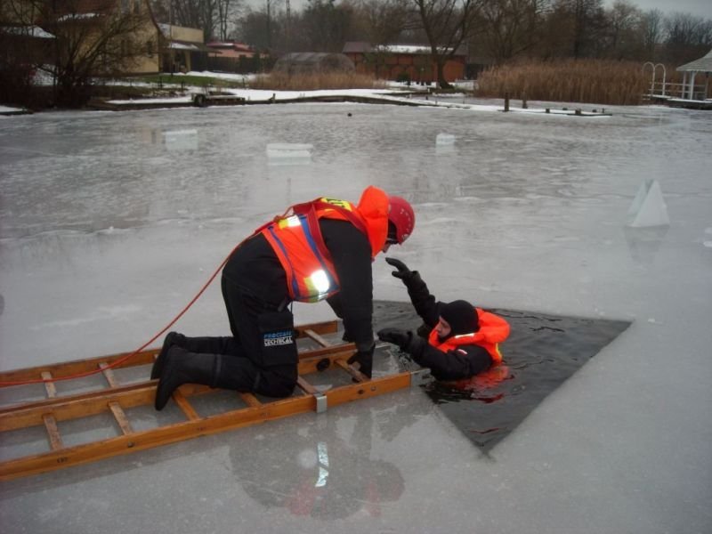 - względnie bezpieczna pokrywa lodowa powinna mieć co najmniej 10 cm grubości