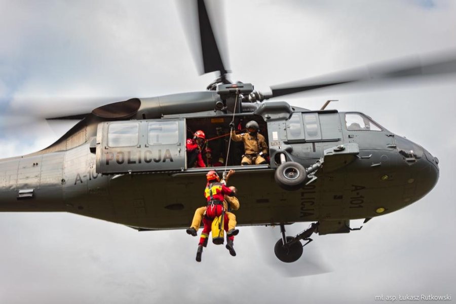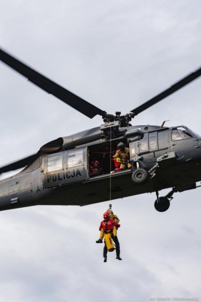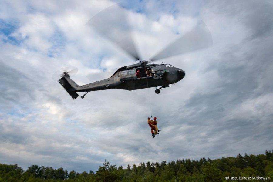 Działania w naszym powiecie były idealną okazją do ćwiczeń ewakuacji osób uwięzionych w bagnach z wykorzystaniem śmigłowca Black Hawk.