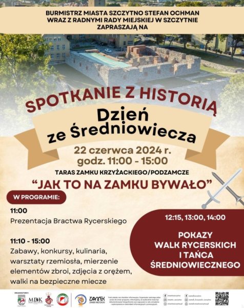 Burmistrz Miasta Szczytno, Stefan Ochman, wraz z Radnymi Rady Miejskiej w Szczytni zapraszają wszystkich mieszkańców oraz gości na wyjątkowe wydarzenie - "Dzień ze Średniowiecza", które odbędzie się na Tarasie Zamku Krzyżackiego i Podzamczu w Szczytnie.