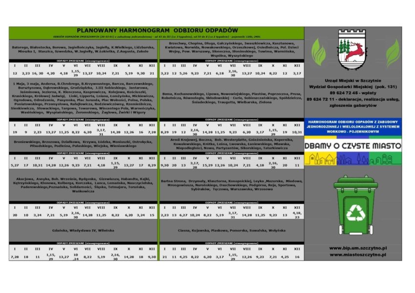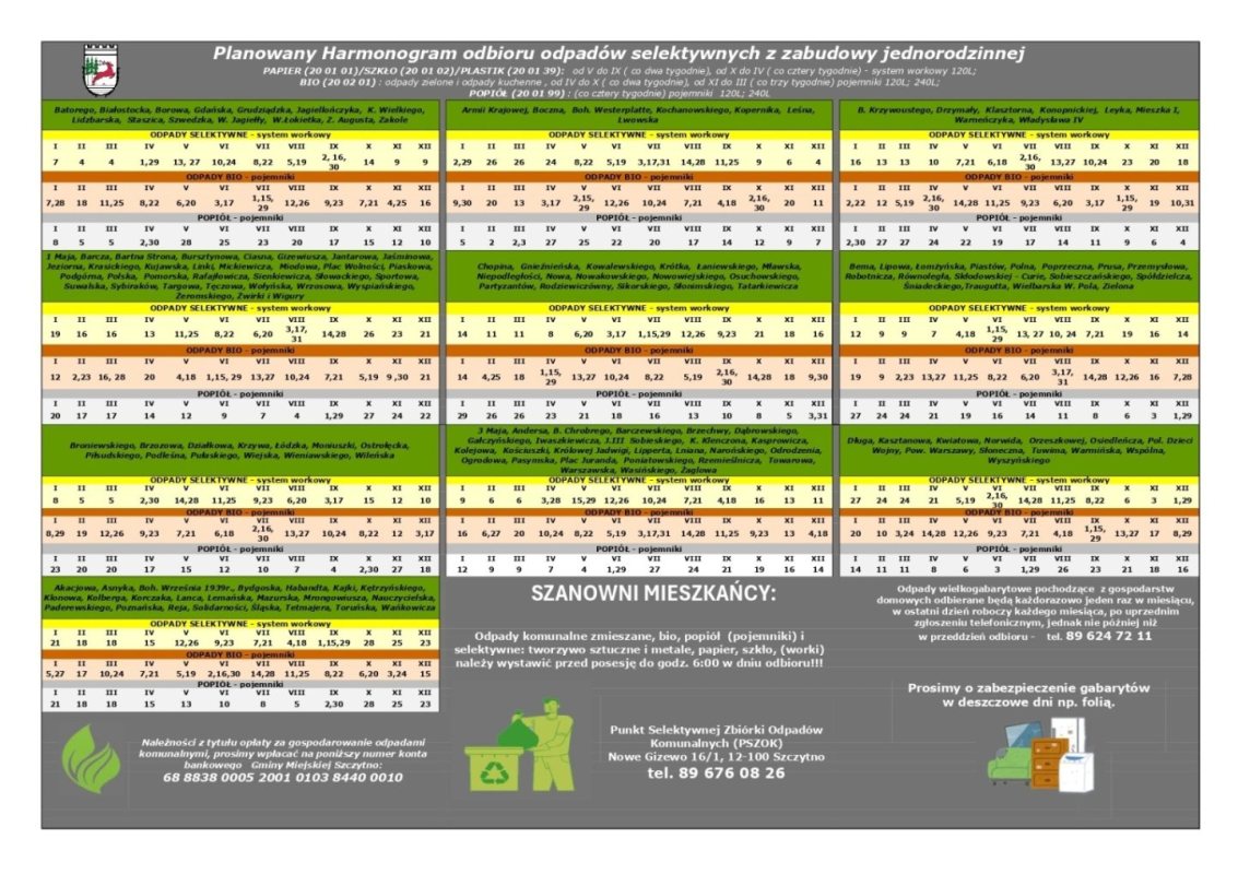 Sprawdź nowy harmonogram odbioru śmieci w Szczytnie