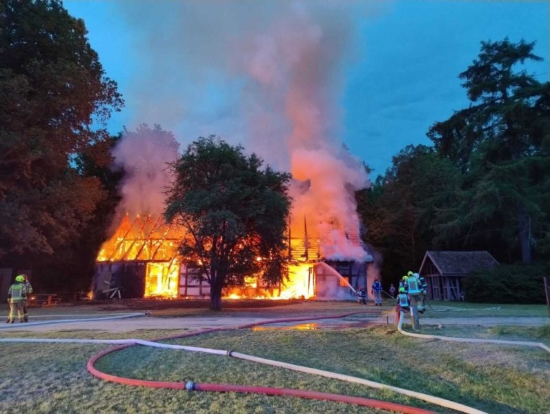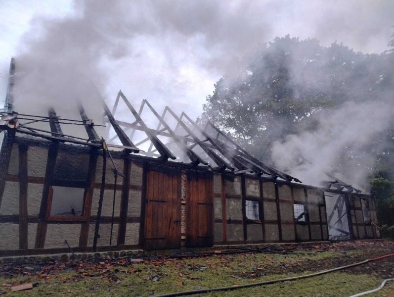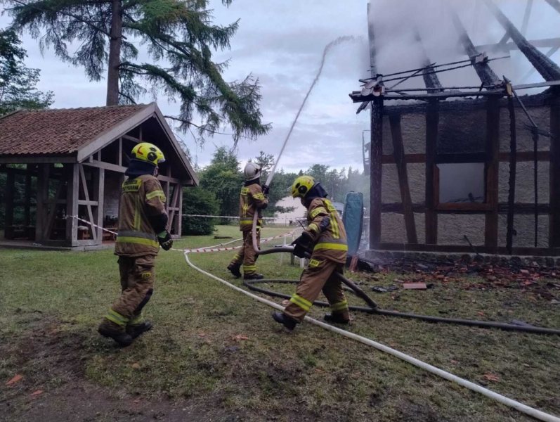 Strażacy walczyli nie tylko z żywiołem, ale też z zagrożeniem rozprzestrzenienia się ognia na pobliski las. Pożar udało się opanować, jednak budynek został całkowicie zniszczony. W akcji udział brało 34 strażaków.