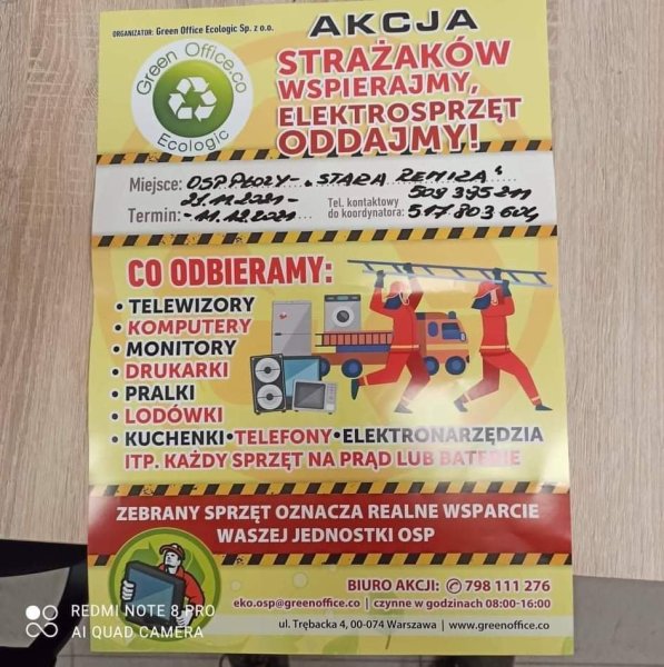 Okazuje się, że każdy z nas ma szanse na wsparcie strażaków. Wystarczy oddać im swoje "elektrośmieci". Środki pozyskane poprzez zbiórkę zalegających „elektrośmieci”, otrzymają właśnie jednostki OSP, dla których przekażemy sprzęt. Po ogłoszeniu zbiórki przez jednostkę w Płozach, do projektu dołączyła również jednostka z Olszyn.