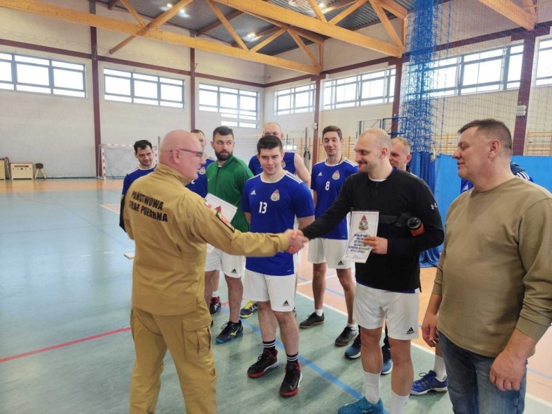 Na zakończenie zawodów Komendant Powiatowy PSP w Szczytnie bryg. Zbigniew Stasiłojć wręczył uczestnikom dyplomy oraz podziękował za sportową rywalizację w duchu fair play. Szczególne słowa uznania skierowano do Andrzeja Walewskiego, dyrektora Szkoły Podstawowej w Wielbarku, za udostępnienie hali sportowej.