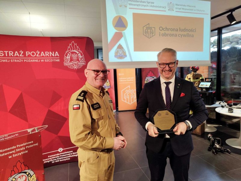 Podczas spotkania bryg. Zbigniew Stasiłojć wręczył symboliczne statuetki wojewodzie, staroście oraz komendantowi wojewódzkiemu w podziękowaniu za wsparcie działań realizowanych przez KP PSP w Szczytnie i jednostki OSP. Po części oficjalnej zaprezentowano wybrany sprzęt zakupiony w 2025 roku przez komendę, miasto i starostwo.