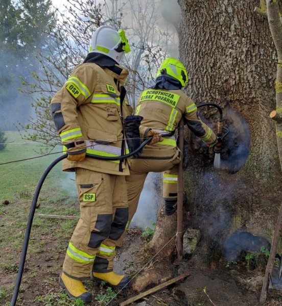 Strażacy z OSP Jedwabno w czwartek, 21 kwietnia zostali wezwani do dość nietypowego zdarzenia. W Piduniu zapaliło się drzewo. Do zapłonu doszło najprawdopodobniej w wyniku spawania elementów pobliskiego ogrodzenia.