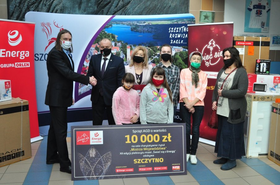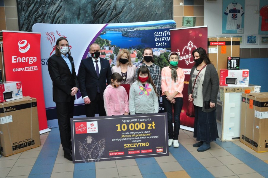 W nagrodę grupa Energa przekazała naszemu miasto 10 tys. zł na zakup sprzętu AGD dla najbardziej potrzebujących mieszkańców. Sprzęt trafi do 9 rodzin ze Szczytna wytypowanych przez Miejski Ośrodek Pomocy Społecznej w Szczytnie. AGD to: po dwie sztuki lodówek, zmywarek, pralek, czajników, mikrofalówek oraz kuchenek. Natomiast bakteriobójcza lampa UV trafi do Miejskiego Ośrodka Pomocy Społecznej w Szczytnie.