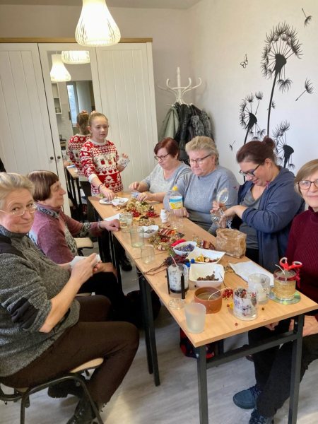 W ozdobnych szklankach, słoiczkach, gliniakach układali kompozycje z wybranych przez siebie elementów: świerk, cynamon, rozgwiazdy, kawa, oraz inne kolorowe dodatki. Następnie decydowali jakiego zapachu będzie świeca, wybierając go z wielu dostępnych olejków eterycznych. Gotowe kompozycje pokryła parafina. Wszyscy pracowali z dużym przejęciem i zaangażowaniem. Każda świeca okazała się wyjątkowo piękna i niepowtarzalna.
