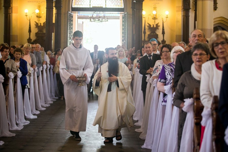 Kościół pękał w szwach. Przystrojony był, jak na tradycyjne wesela. I nieco podobieństwa w obu uroczystościach jest, bo dla większości z wyświęcanych w maju diakonów nich rodziny po uroczystej mszy prymicyjnej przygotowują przyjęcia.