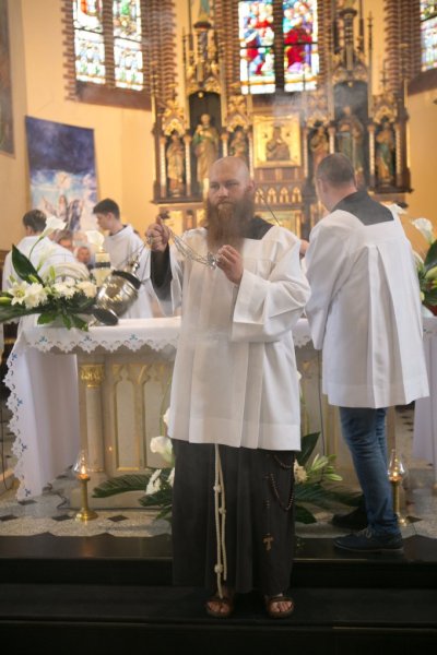 Dawid Napiwodzki od niemal dziesięciu lat jest zakonnikiem, a dokładnie kapucynem z Zakonu Braci Mniejszych Kapucynów. Swoją mszę prymicyjną poprowadził w niedzielę o godz. 13 w koście pod wezwaniem Wniebowzięcia Najświętszej Maryi Panny.