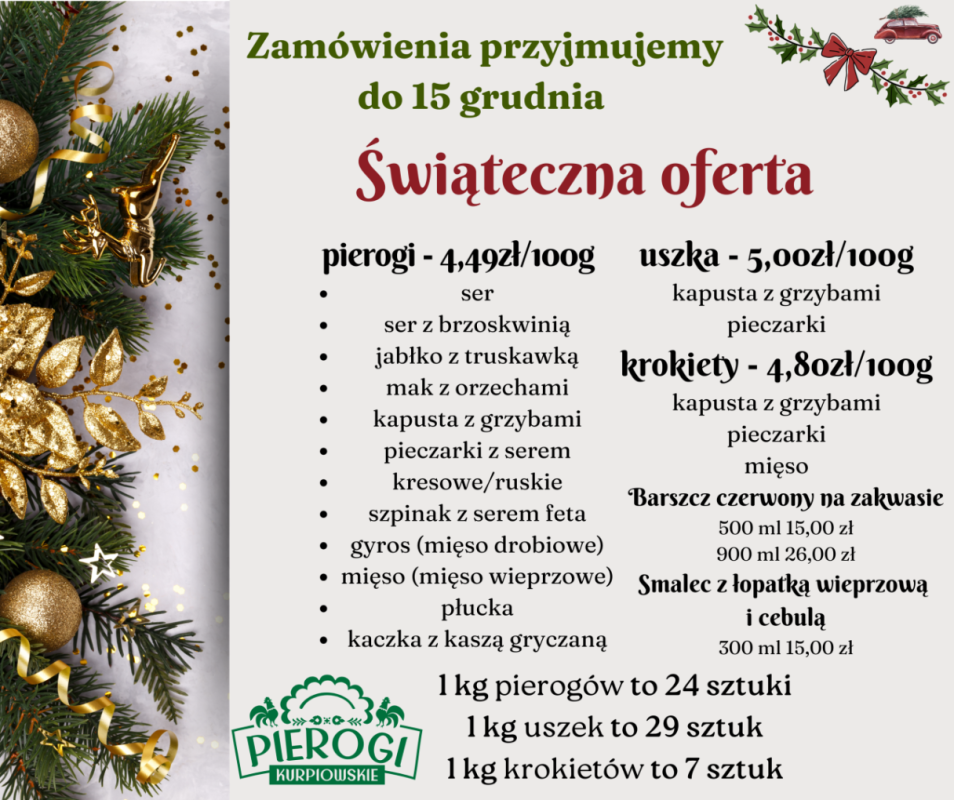 Zamówienia przyjmujemy do 15 grudnia — możliwy odbiór: