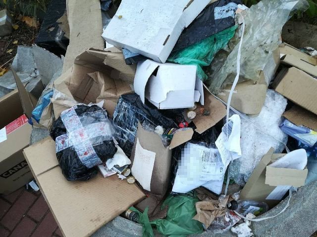 Pan Tomasz w mailu do naszej redakcji chce przestrzec i zwrócić uwagę osobom korzystającym z paczkomatu przy ulicy Lemańskiej w Szczytnie, aby nie wyrzucali opakowań po odebranych przesyłkach do betonowego pojemnika stojącego w pobliżu.