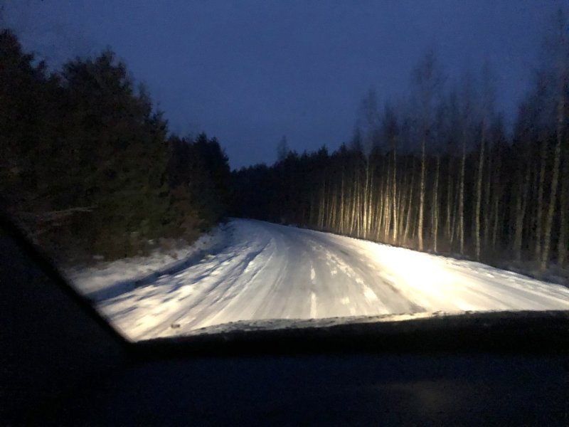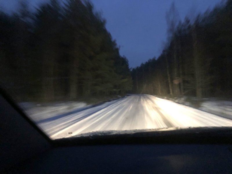 Nawet z Rudki do Szczytna ślisko. Szczególnie zakręt, Nawet koleiny były już widoczne