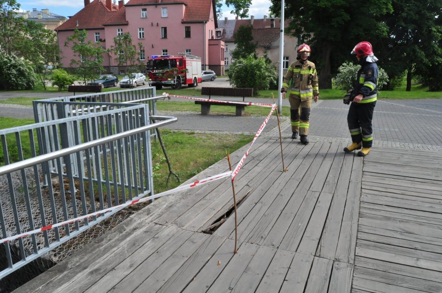 - Deski są naprawdę w słabej kondycji – mówi nam jeden ze strażaków. - Gdyby ktoś na tą pękniętą deskę najechał rowerem mogłoby skończyć się to naprawdę tragicznie.