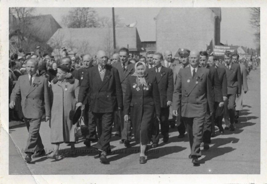 Witold Olbryś - Mazury i okolice - historia, zabytki i archiwalia: 1 Maja w Szczytnie: Jak wyglądały pochody pierwszomajowe w Szczytnie? W każdej dekadzie nieco się różniły, ale zawsze rozpoczynano je na placu Juranda, gdzie znajdowała się trybuna. W latach powojennych w pierwszym szeregu maszerowali mazurscy działacze, tacy jak Fryderyk Leyk, Walter Późny czy Jan Lipert.