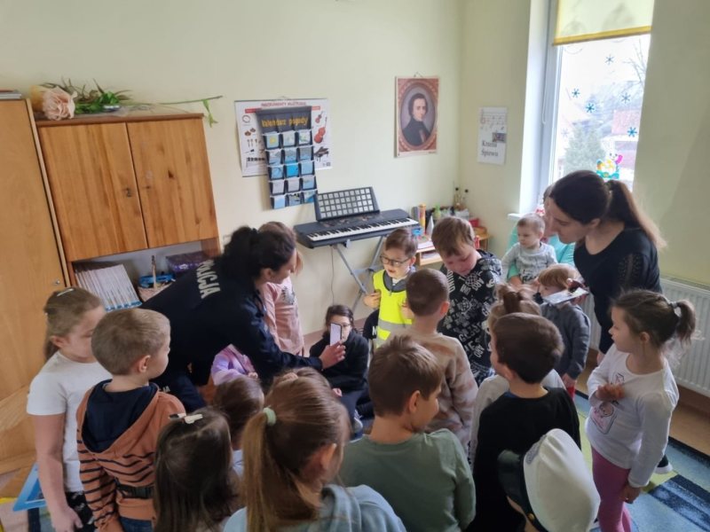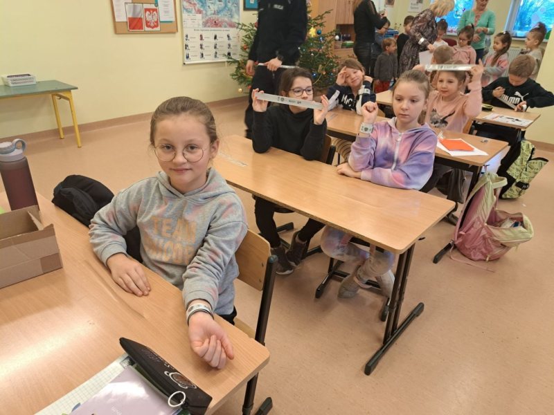 Policjanci rozmawiali z uczniami młodszych klas na temat bezpieczeństwa na drodze w ramach akcji „Oklaski za odblaski”. Mundurowi przypomnieli podstawowe zasady bezpiecznego uczestnictwa w ruchu drogowym. Pokazali także, w jaki sposób działają odblaski i wyjaśnili, dlaczego są tak istotne. Uczniowie wysłuchali również opowieści o Poli, które są przestrogą i wskazówką dla najmłodszych.