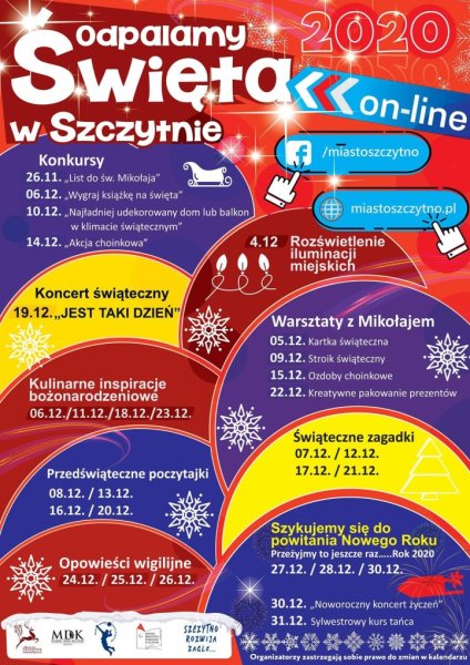 Szczytno odpala święta online – w tej akcji nie zabraknie atrakcji. Ważne, aby śledzić stronę internetową Urzędu Miejskiego i profil facbookowy, lub zaglądać na stronę i profil „Tygodnika Szczytno”. Tam będą dokładne godziny wydarzeń oraz internetowe linki, pod którymi będzie można w nich uczestniczyć. Zapraszamy.