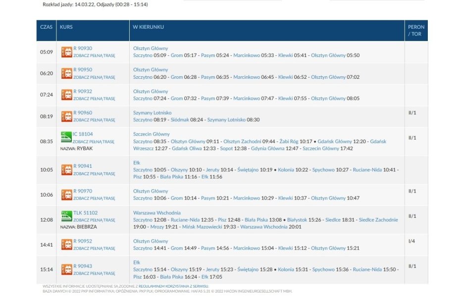 Wygląda na to, że od 13 marca z dworca kolejowego w Szczytnie będzie można dotrzeć, i to bez przesiadki, do wielu miast w Polsce: Warszawy, Szczecina, Gdyni, Koszalina, Białegostoku, Siedlec, Malborka, czy Sopotu... Tak przynajmniej wynika z opublikowanego przez PKP rozkładu jazdy – poinformowali naszą redakcję Czytelnicy „Tygodnika Szczytno”. Ale jest pewne „ale”. Czy to bezpieczne – pyta jeden z czytelników?