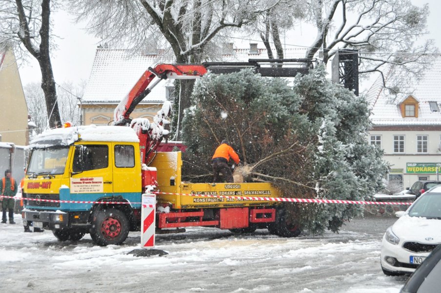W tym roku bożonarodzeniowe drzewko Szczytno otrzymało w prezencie od pani Zofii Baran, mieszkanki Szczytna. Drzewko zostało wycięte z jej posesji. - To świerk srebrzysty - mówi Katarzyna Hrybek, naczelnik wydziału gospodarki miejskiego ratusza. - Była to tak transakcja wiązana - śmieje się pani naczelnik. - Drzewko było już za duże na posesję, na której rosło. Pani Zofia chciała je wyciąć. My zrobiliśmy to za nią, a w zamian piekna choinka trafiła na Plac Juranda. Wygląda imponująco.