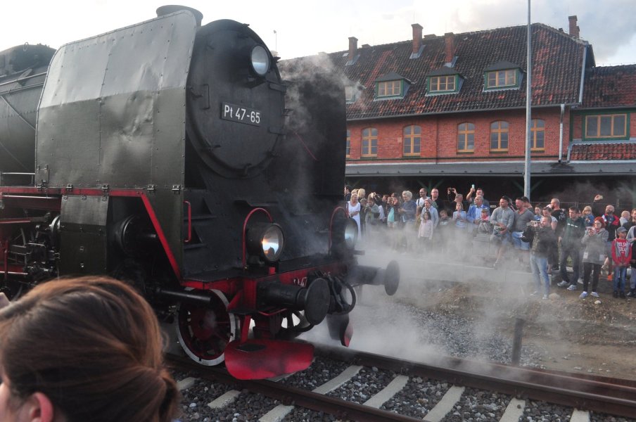 Parowóz polskiej serii pospiesznej Pt47 na dworzec w Szczytnie wjechał punktualnie o godz. 19.50. Przywitały go tłumy. Były całe rodziny. Można było porozmawiać z maszynistą i obsługą pociągu. Zrobić pamiątkowe zdjęcia, a nawet wejść do maszynowni. Parowóz napędzany jest węglem, dlatego w maszynowni był specjalny pojemnik na niego oraz łopata, za pomocą której ładowany jest do pieca, którym napędzane są silniki parowe. Do parowozu podczepione były wagony, w tym kultowy Wars. W wagonach jechali turyści, także zagraniczni.