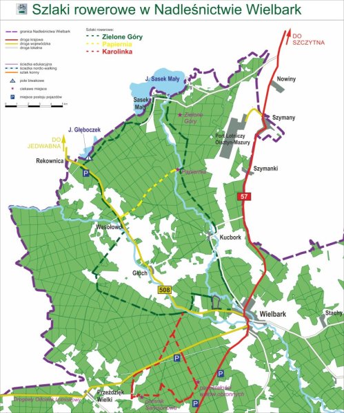 Na terenie Nadleśnictwa Wielbark wytyczone zostały trzy szlaki rowerowe o łącznej długości 54 km. Szlaki przebiegają przez najatrakcyjniejsze tereny nadleśnictwa, prezentując jego walory przyrodniczo-historyczne.