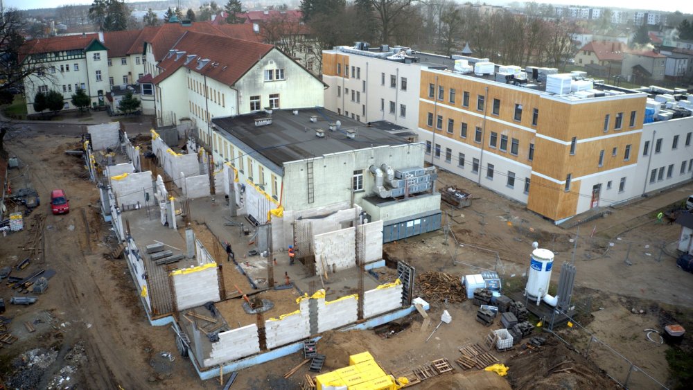 W ramach rozbudowy szpitala powstaje trzykondygnacyjne skrzydło, w którym zostaną utworzone: oddział wewnętrzny na 50 łóżek, oddział dziecięcy na 20 łóżek, laboratorium, apteka, Zakład Opieki Medycznej oraz Gabinet Diagnostyki Endoskopowej.