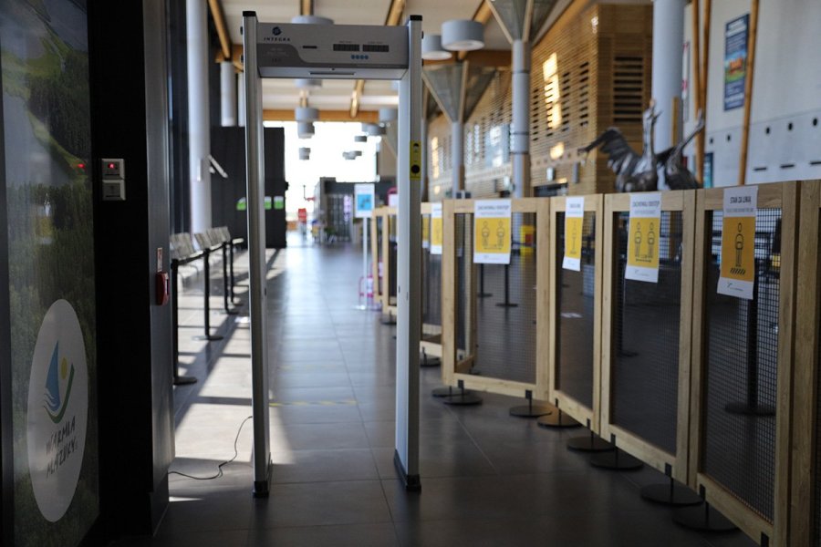 - pracownicy lotniska sprawdzają karty pokładowe i dowody osobiste osłonięci ekranami z pleksi. Zwiększono także częstotliwość dezynfekowania wszystkich powierzchni, a pasażerowie będą mogli skorzystać z bezpłatnej dezynfekcji rąk w jednym z wielu punktów zlokalizowanych na terminalu. Zrobiliśmy wszystko, aby pasażerom korzystającym z Portu Lotniczego Olsztyn-Mazury zapewnić komfort i bezpieczeństwo podróży.