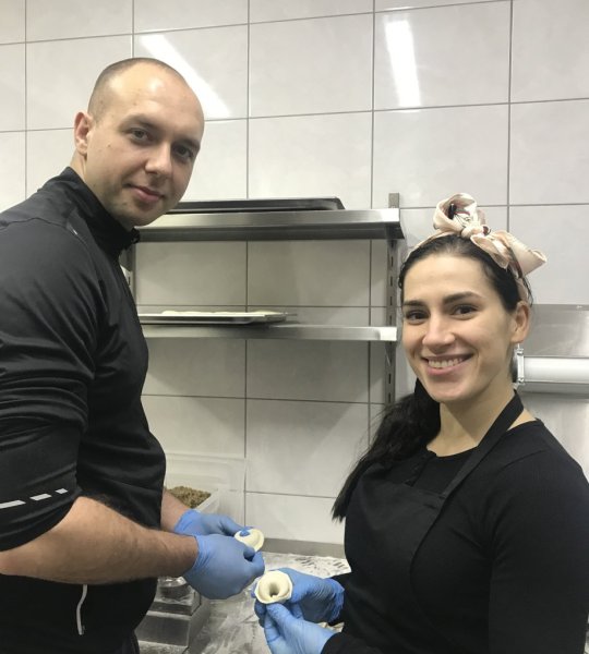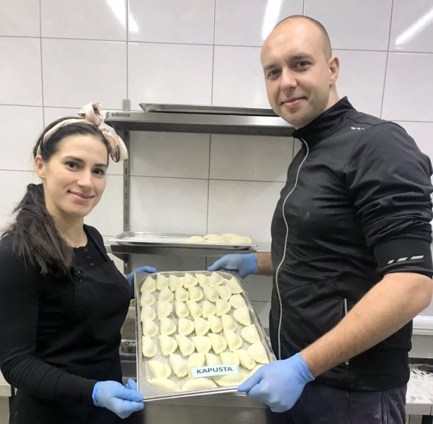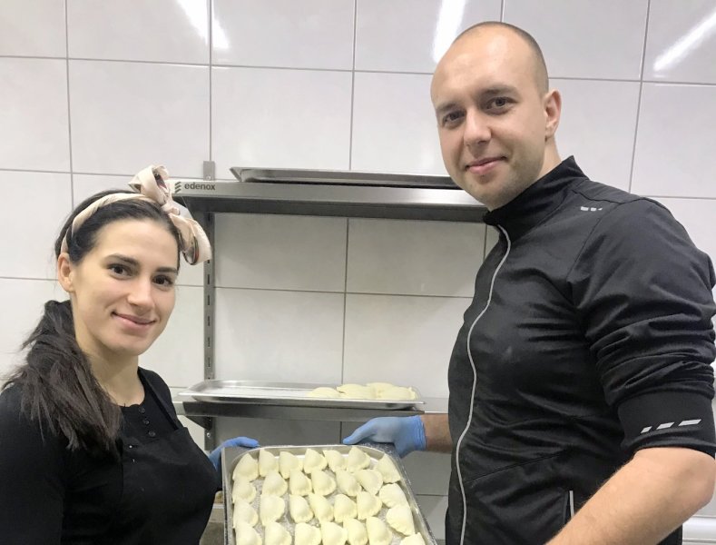 Zaczynaliśmy bardzo ostrożnie. Pracowaliśmy, zresztą jest tak nadal, sami. Pomagali nam rodzice, rodzina. Na początku lepiliśmy po jakieś 2 kilogramy różnego rodzaju pierogów, sprawdzaliśmy, co klienci chętniej kupują i dorabialiśmy je na bieżąco. Cenimy świeżość, bo to najlepsza okrasa. Podczas pracy jest muzyka, rozmowy, przebywamy ze sobą, daje nam to ogromną radość. Wolne mamy tylko soboty. Ale myślę, że początki każdej działalności takie są. Albo się poświęcisz i uda się osiągnąć sukces, albo trzeba szukać czegoś innego. W rozpoczęciu działalności pomogły nam też nasze wyuczone zawody. Jako prawnik ogarnęłam sprawy administracyjne, a Paweł budowlane. Wspólnie szpachlowaliśmy, czy kładliśmy płytki. Uczyliśmy się tego, czego nie potrafiliśmy zrobić: sprawdzaliśmy w internecie, pytaliśmy mojego taty, czy brata. Był to naprawdę fajny czas. Nauczyłam się szpachlować i proszę mi uwierzyć nieźle mi to wychodzi (śmiech).